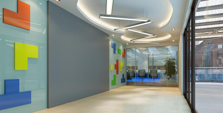 工程說明:整體裝修以現代科技時尚裝修風格為主,裝修色彩明快、輕松活潑。