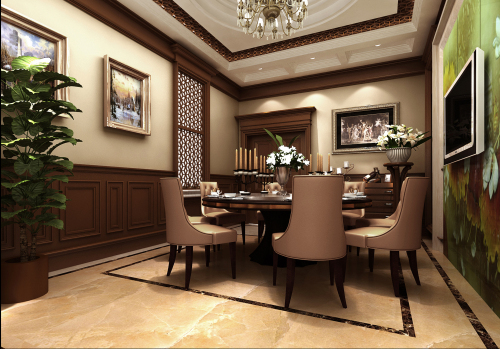 工程說明:別墅設計不僅僅考慮的是別墅居住者的生活習慣及各種風格的搭調,同時還要考慮別墅設計的外在元素。地面大理石拼鋪,深色木質扶手的家具,挑空的層高,歐式的壁爐和歐式木質造型,整個客廳空間就營造出一種沉穩大氣的氛圍。帶著美式風格的粗獷大氣和韻味,